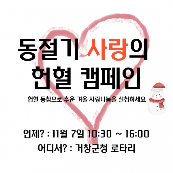 [금요저널] 거창군은 오는 7일 대한적십자사경남혈액원과 함께 동절기 사랑의 헌혈 캠페인을 운영한다.