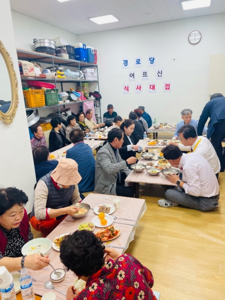 윤명오 체육회장과 이상은 부녀회장은 “경로당 운영에 항상 힘써주시는 경로당 임원들에게 식사대접을 하게 되어 뿌듯하다”며 “우리 동의 화합과 발전을 위해 애써주시는 어르신들에게 항상 감사드린다”고 말했다.