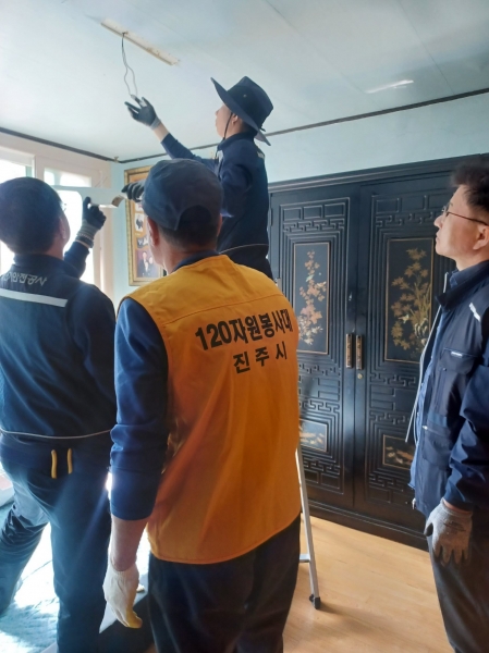 또한 대한미용사회 진주시지부에서는 취약 계층 어르신 18명에게 이·미용 봉사를 실시했으며 청소과 직원들은 노후 방충망 102개 교체 및 지반침하 등으로 파손된 마을안길 15개소를 보수했다.