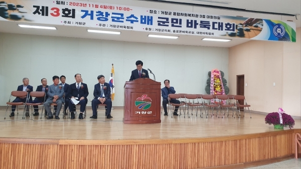 이종하 거창군 부군수는 격려사를 통해 “이번 대회에 참가하는 선수들이 선의의 경쟁을 통해 친목을 도모하고 화합하는 자리가 되길 바라며 앞으로도 거창군수배 바둑대회가 최고의 대회가 될 수 있도록 적극적으로 지원하겠다”고 말했다.