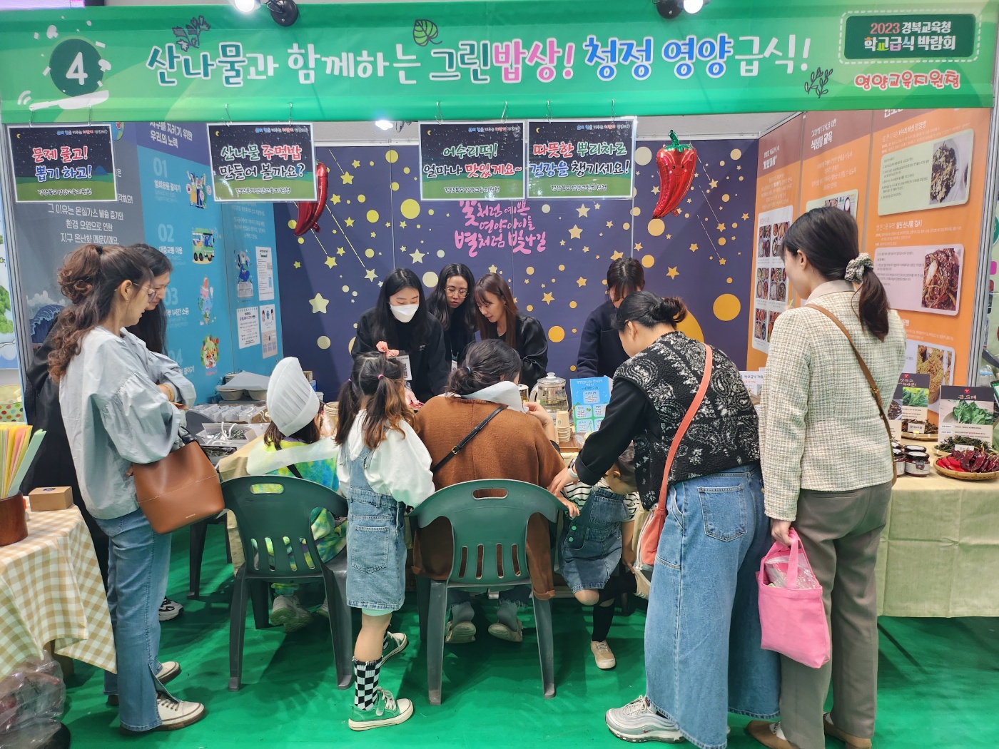 □ 경상북도영양교육지원청(교육장 김유희)은 2023년 11월 4일(토) 포항실내체육관에서 개최된 2023년 경북 학교급식박람회에 참가하여 영양지역의 특색을 살린 홍보부스를 운영하였다.