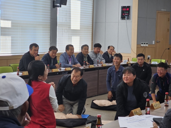 이번 이장회의는 군 안전총괄과에서 추진하는 ‘2023년 찾아가는 도민안전교실’을 통한 응급구조, 심폐소생술 이론강의 및 실습으로 시작했다.