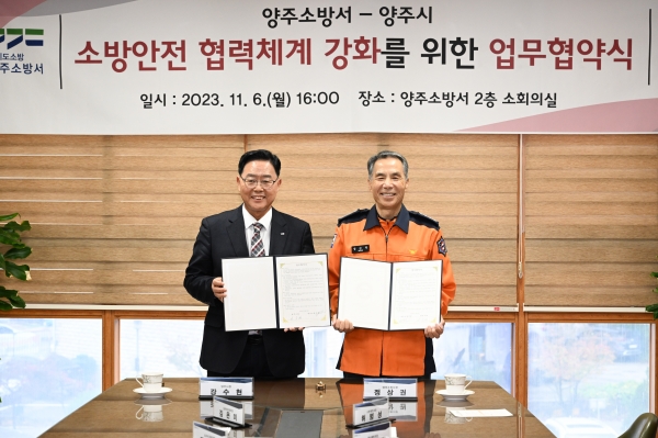 [금요저널] 양주시는 양주소방서와 지난 6일 양주소방서 소회의실에서 소방 안전 협력체계 강화를 위한 업무협약을 체결했다고 밝혔다.