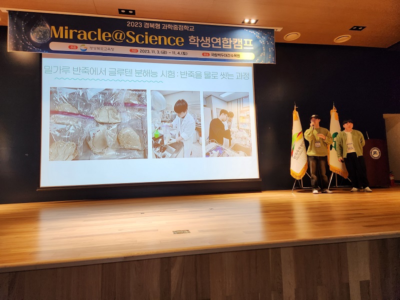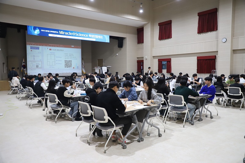 ○ 영천고등학교(교장 서정원)는 지난 11월 3일(토) ~ 4일(일) 경상북도교육청에서 개최한 ‘2023 경북형 과학중점학교 학생연합캠프(Miracle@Science)’에 참가하여 과제연구발표대회에서 금상을 수상하였다.