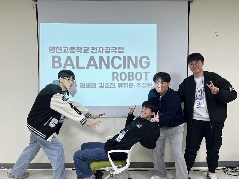 ○ 영천고등학교에서는 2학년 변선우, 이현우 학생이 ‘식품에 함유되어 있는 안전한 유산균으로부터 저글루텐 식품 개발(지도교사 장명경)’을 주제로 발표하였고, 2학년 권세찬, 김호진, 류휘준, 조성현 학생이 ‘밸런스 로봇 제어(지도교사 권덕호)’를 주제로 과제연구 발표대회에 출전하였고 두 팀 모두 분과별 1등(금상)을 획득하는 성과를 올렸다.