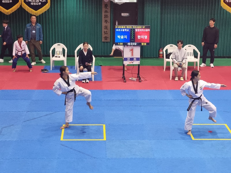 영천시 최무선관에서 열린 이번 대회에서 박윤지 학생은 태권도의 여러 종목 중 공인품새 개인전 여자고등부에 출전하였다.
