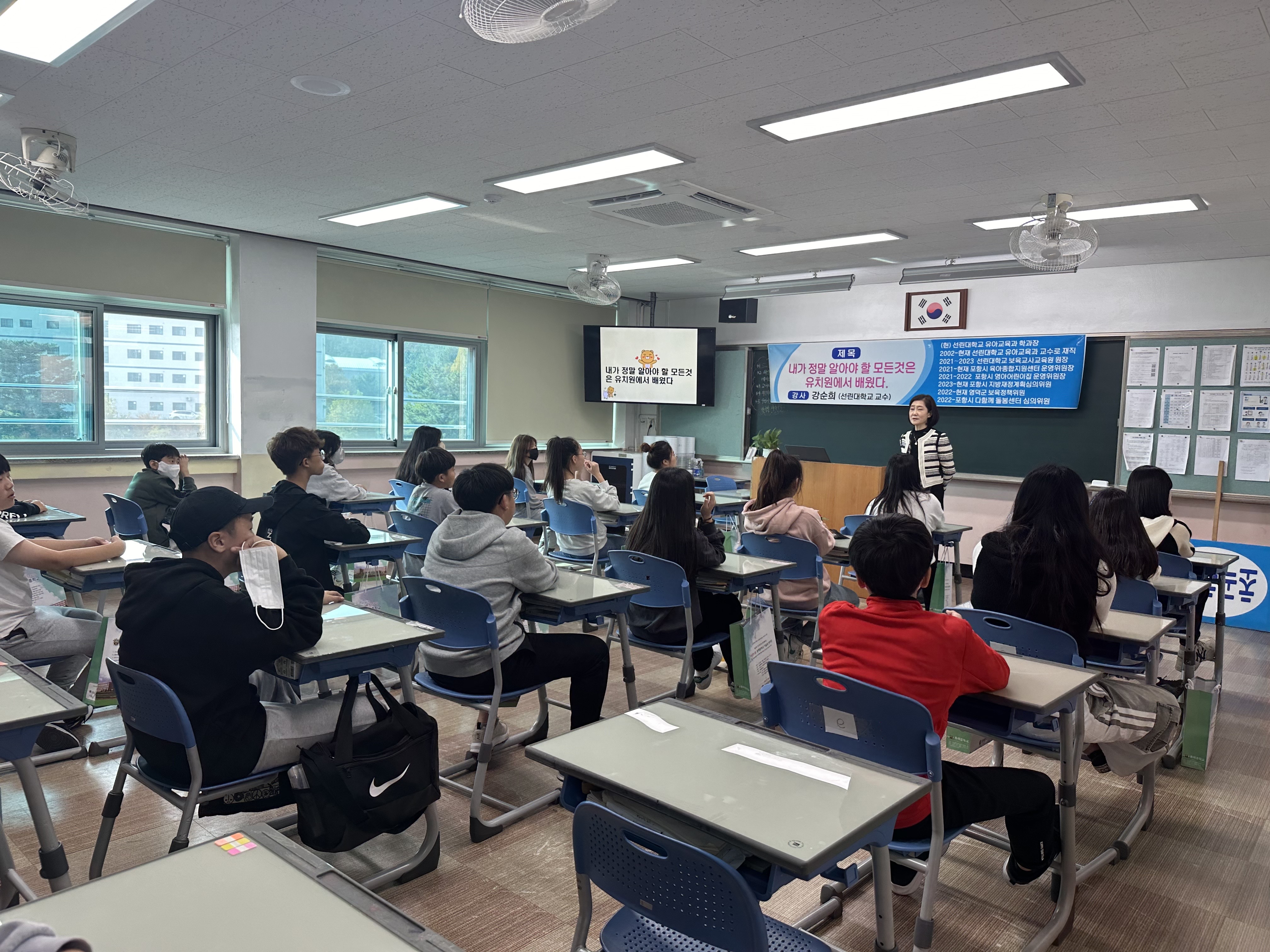 그리고, 교실에서는 합기도 관장, 변호사, 초등학교교사, 포스텍 대학원생, 서울대학교 학부생, 흥해읍장, 흥해중학교 전임교장 2명, 선린대학교 유아교육과 교수, 선린대학교 응급구조과 교수, 포항대학교 치위생과 교수, 포항대학교 간호학과 교수, 피아니스트, 동화작가, 경북경찰청 제1기동대 경찰관, KAI 전투기 엔지니어, 대구대학교 법학대학원생 등 19명의 강사님들께서 초등학생과 중학생을 대상으로 진로 및 직업에 대하여 강연회를 실시하였습니다.