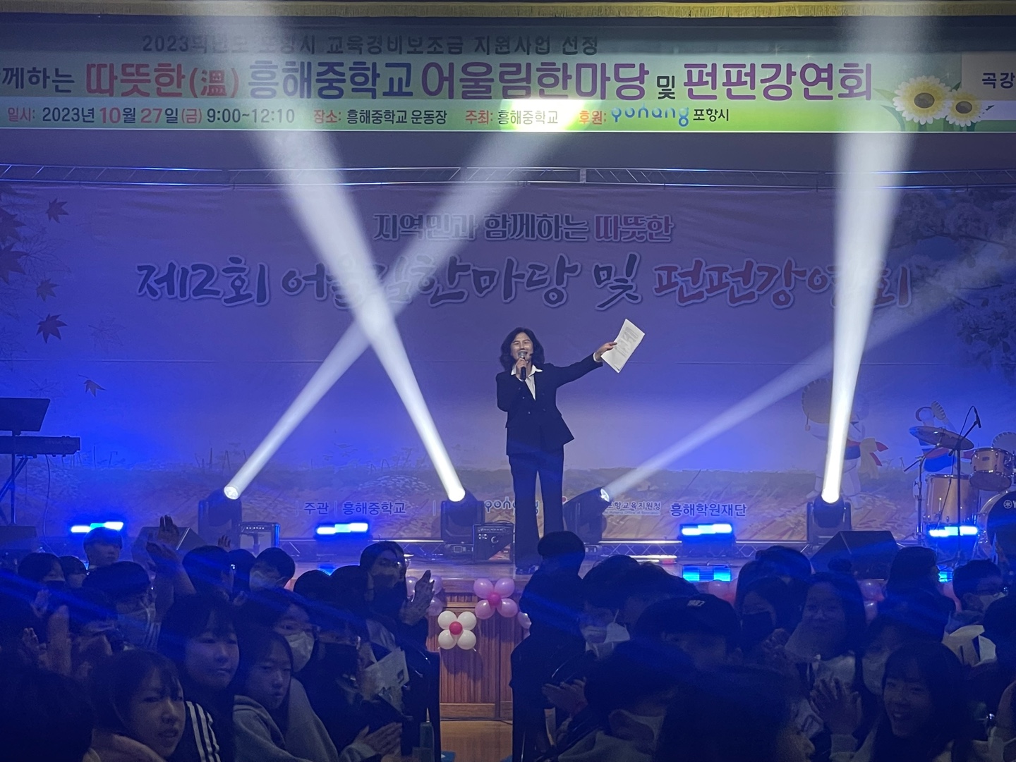 2부 어울림 음악회는 흥해중학교가 지역 5개 초등학교와 함께 연합하여 노래와 댄스, 밴드 연주, 창작 댄스 등을 선보여 감동을 선사했습니다. 특히 영일고등학교 에이블의 창작댄스와 카리스마 명성 합기도에서 시범단 공연, 졸업생 박도윤 성악가가 수준 높은 무대를 꾸몄습니다.