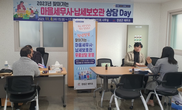 [금요저널] 창녕군은 지난 8일 창녕전통시장상인회사무실에서 지방세 및 국세 상담으로 군민들에게 세무 재능기부를 하는 ‘찾아가는 마을세무사 상담DAY’를 운영했다고 밝혔다.
