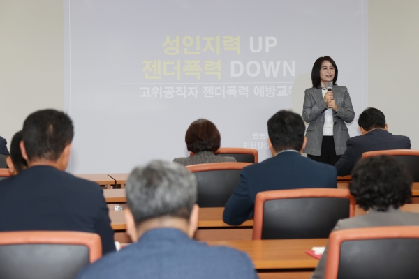 교육내용은 성인지 감수성 향상 방안 및 젠더 폭력 구체적 사례알아보기, 기관장 및 고위공직자로서의 젠더 폭력 예방을 위한 책임과 역할 알기 등으로 진행됐다.