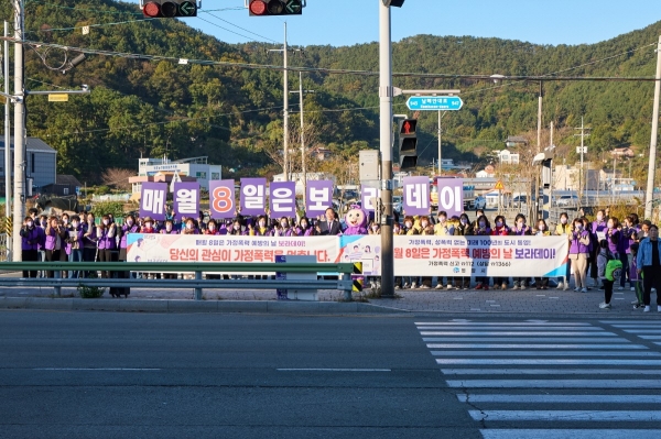 [금요저널] 통영시는 지난 8일 ‘보라데이’를 맞아 광도면 향교마을 진입 새길 앞 교통섬에서 가정폭력 및 성폭력 예방 캠페인을 실시했다.