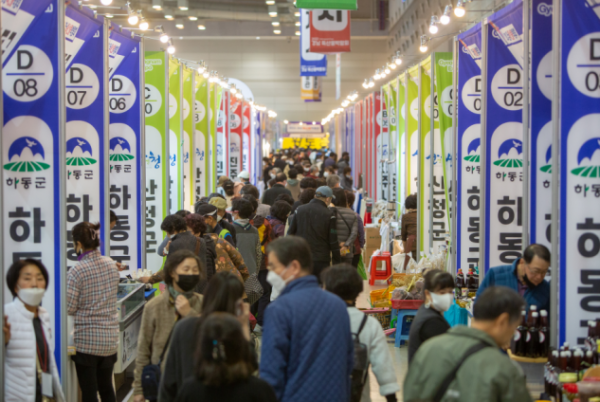 올해 16회째를 맞는 이 행사는 320개 사 416 부스 규모로 각 시군의 대표 농임수축산식품과 건강식품, 한방약초와 전통주 등 다양한 제품을 선보인다.