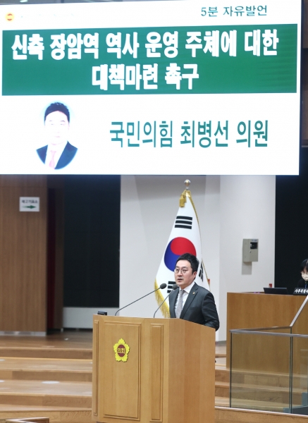[금요저널] 경기도의회 최병선 의원은 지난 9일 열린 제372회 정례회 제3차 본회의 5분 자유발언을 통해 서울 도시철도 7호선 장암역 신축 역사 운영 주체에 대한 서울교통공사와 경기도의 대책 마련을 촉구했다.