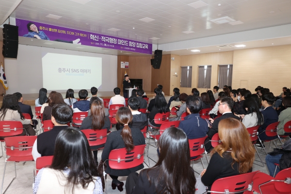 이날 교육은 충주시 유튜브 전문관인 김선태 주무관을 초청해 ‘충주시 SNS 우수사례로 보는 혁신·적극행정’이라는 주제로 강의를 진행했다.