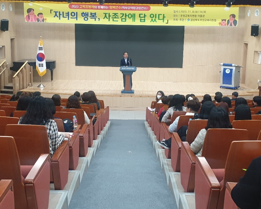 □ 포항교육지원청(교육장 천종복)은 11월 8일(수) 포항교육지원청 여울관에서 관내 초․중․고 학부모 및 교원을 대상으로 ‘교육공동체가 함께 하는 행복 연수(학부모역량강화 연수)를 실시하였다.