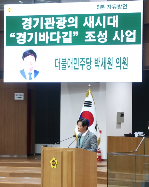 [금요저널] 경기도의회 안전행정위원회 박세원 의원은 경기도의회 제372회 정례회 제3차 본회의에서 경기관광의 새시대 ‘경기바다길’ 조성 사업 주제로 5분자유발언을 했다.