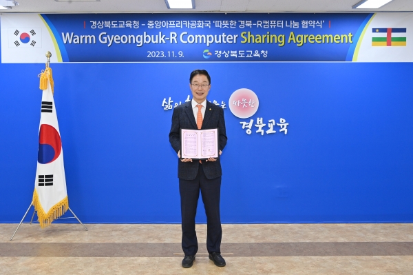 [금요저널] 임종식 경북교육감은 ‘따뜻한 경북-R컴퓨터 국제 나눔 사업 따뜻한 경북-R컴퓨터 국제 나눔 사업: 경상북도교육청이 불용 정보화 장비를 재자원화해 개발도상국 등에 기증해 사회적 가치 실현과 교육 정보화로 국제협력을 선도하는 사업이다.