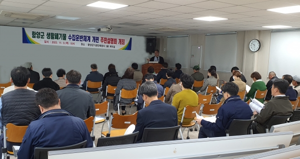 [금요저널] 함양군은 9일 오전 10시 기관단체청사 3층 회의실에서 ‘생활폐기물 수집운반체계 개편’ 관련 주민설명회를 개최했다.
