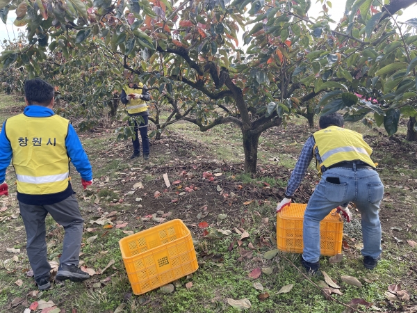 [금요저널] 창원특례시 하수도사업소 직원들은 지난 10일 의창구 동읍 봉곡리 일원에 소재한 단감농장을 방문해 농촌일손 돕기를 실시했다.