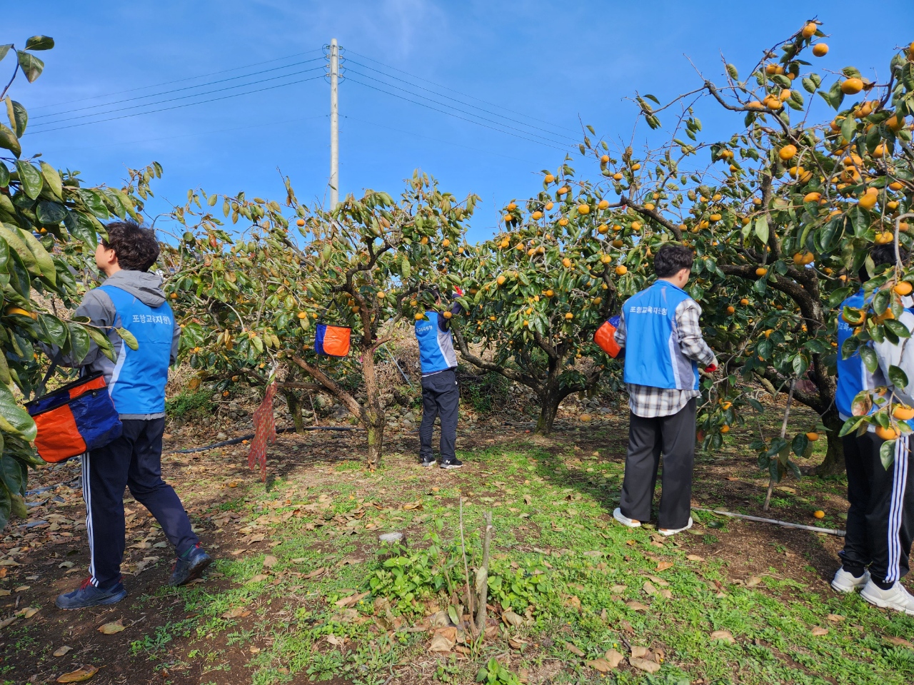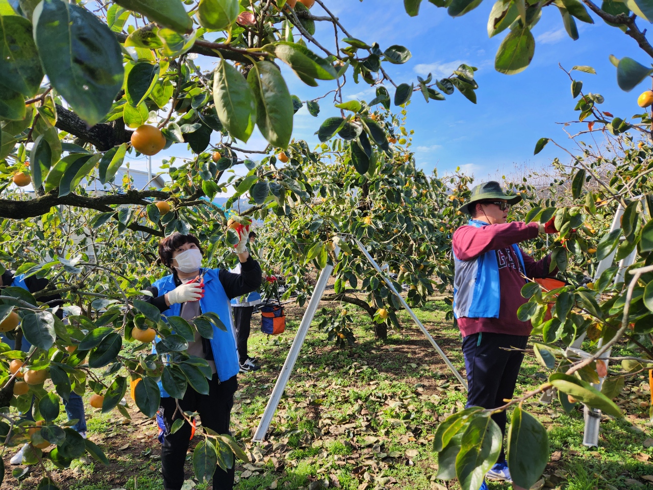 □ 이날 봉사활동에 참여한 직원들은 단감 수확을 도우며 농촌 일손 돕기를 진행하여 봉사활동을 통한 보람과 농민의 노고를 다시 한번 느낄 수 있었고, 주변 무단으로 버려진 쓰레기를 수거하는 등 환경 정화 활동을 진행하였다.