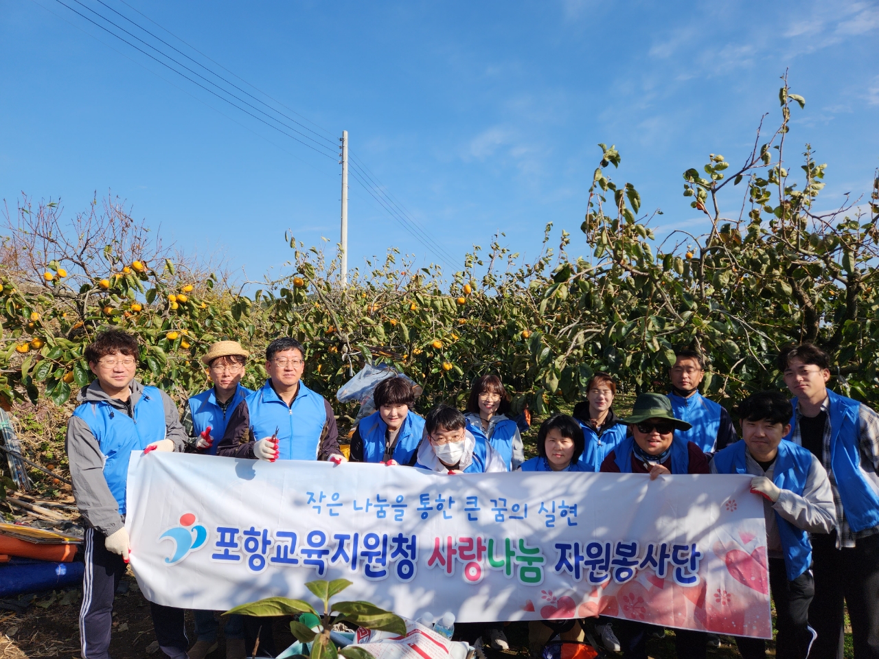 □ 포항교육지원청(교육장 천종복) 재정지원과는 「사랑나눔 봉사활동」의 일환으로 11월 10일(금) 포항시 송라면 광천리 인근에서 농촌 일손 돕기를 실시하고 주변 환경 정화 활동을 하였다.