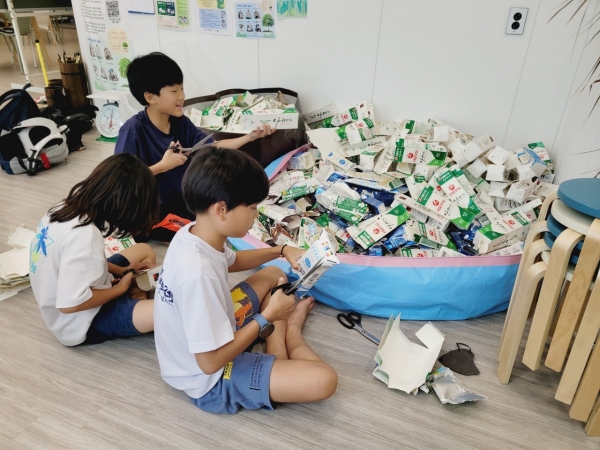 [금요저널] 경기 양평 서종면 청소년 휴카페 망고의 자원순환 우유팩 다시쓰기 활동이 지역을 넘어 기업의 참여로 이어지고 있다.