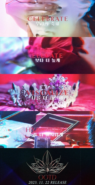 공개된 영상 속에는 ‘CELEBRATE 우리의 축제 / ELEVATE 보다 더 높게 / VISUALIZE 나를 더 표현해 / HYPNOTIZE 좀 더 어지럽게’라는 타이틀 ‘OOTD’의 가사 일부가 흘러나오고 있다.