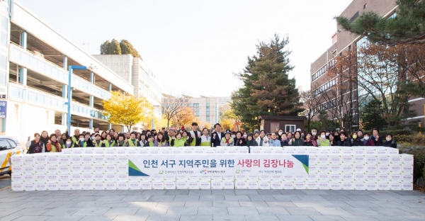 [금요저널] 인천 서구는 13일 굿네이버스 인천본부와 굿네이버스 인천지역후원회가 서구, 서구여성단체협의회, 서구보훈단체협의회와 협력해 ‘사랑의 김장 나눔’ 행사를 진행했다고 밝혔다.