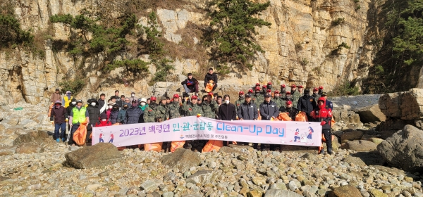 이날 청소에는 지역 주민과 해병 제6여단, 경찰 및 소방서 등 관계기관 100여명이 참여한 가운데 등대해변 환경정비를 실시해 중국 등지에서 떠내려온 부유물 쓰레기 약 30톤을 수거했다.