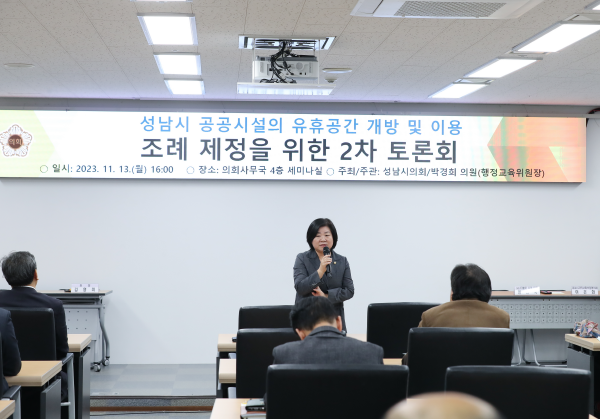 박경희 의원은 “오늘 주신 의견을 참고해 조례제정에 반영하도록 하고 더 나아가 성남시 공공시설뿐만 아니라 민간에서도 지원을 통해 시민들에게 유휴공간을 개방할 수 있도록 하겠다”고 했다.