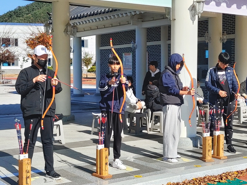 □ 동지중학교(교장 신현경)는 11. 11.(토) 30여명의 학생이 청도군에 위치한 청도신화랑풍류마을을 방문하여 국궁 및 다양한 체험을 진행하였다.