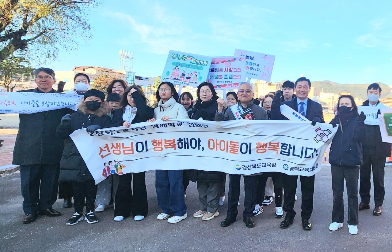 □ 경상북도영덕교육지원청(교육장 윤인한)은 11월 14일(화) 7시 30분부터 1시간 동안 영덕야성초등학교 정문에서 학교구성원(교원․학생․학부모)들과 함께 등굣길 교원 응원 이벤트 ‘함께 학교 캠페인’을 실시하였다.
