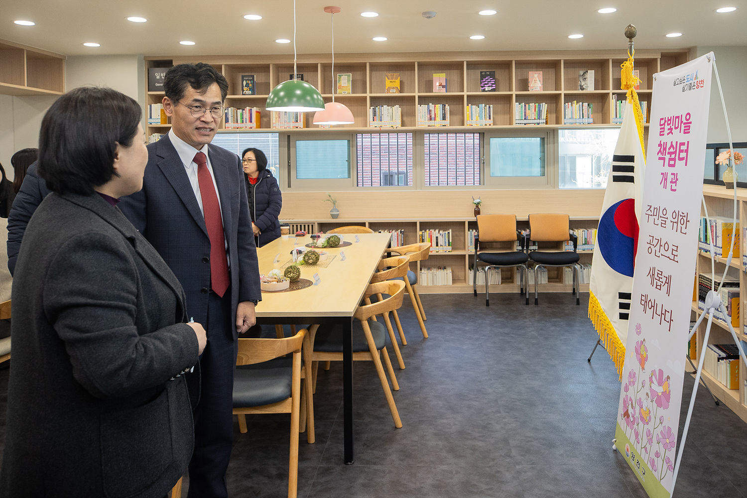 132㎡ 규모로 재개관한 달빛마을 책쉼터는 4,600여 권의 장서와 열람석 32석을 갖춘 주민전용 커뮤니티 공간으로 재탄생했다. 회의실 등 주민 소통 공간이 부족하다는 의견을 적극 반영해 8인용 탁자와 좌석을 배치했으며, 밝은 천장등과 포인트 조명, 화사한 색감의 내부 인테리어와 벽돌마감재, 가구 등을 활용해 공간에 확장성과 재미를 더했다.