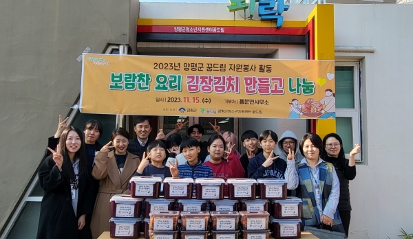 [금요저널] 양평군 학교밖청소년지원센터 꿈드림에서는 15일 오전 9시 30분부터 오후 4시까지 청소년들이 직접 김장김치를 만들고 나누는 봉사활동을 진행했다.