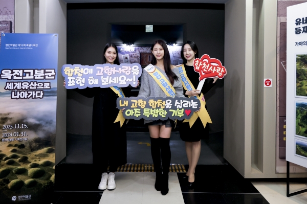 한편 지난 15일 2023 미스경남 관광홍보사절단이 합천군을 방문해 합천 옥전고분군 세계유산 등재 기념행사 참여와 더불어 합천군 고향사랑기부제를 응원했다.