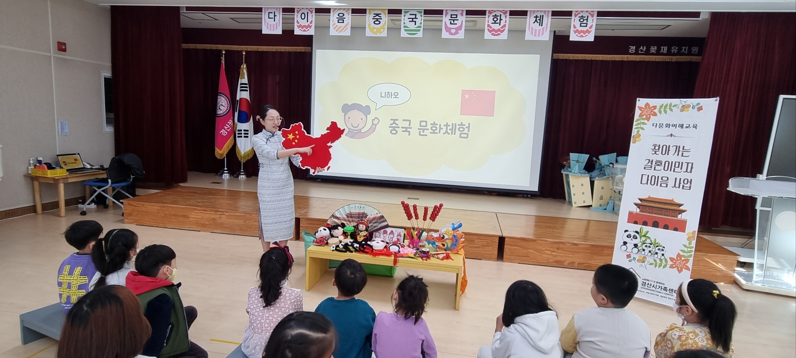□ 다이음 문화체험은 경산시가족센터와 연계한“베트남, 중국으로 떠나는 오감만족 여행”을 주제로 인사말 배우기, 각 나라의 전통놀이 체험 및 전통악기 연주하기, 전통의상 입어보기, 나라별 전시 물품 관람하기 등 다양한 활동을 통해 베트남과 중국의 문화를 쉽고 재미있게 알아보는 시간을 가졌다.