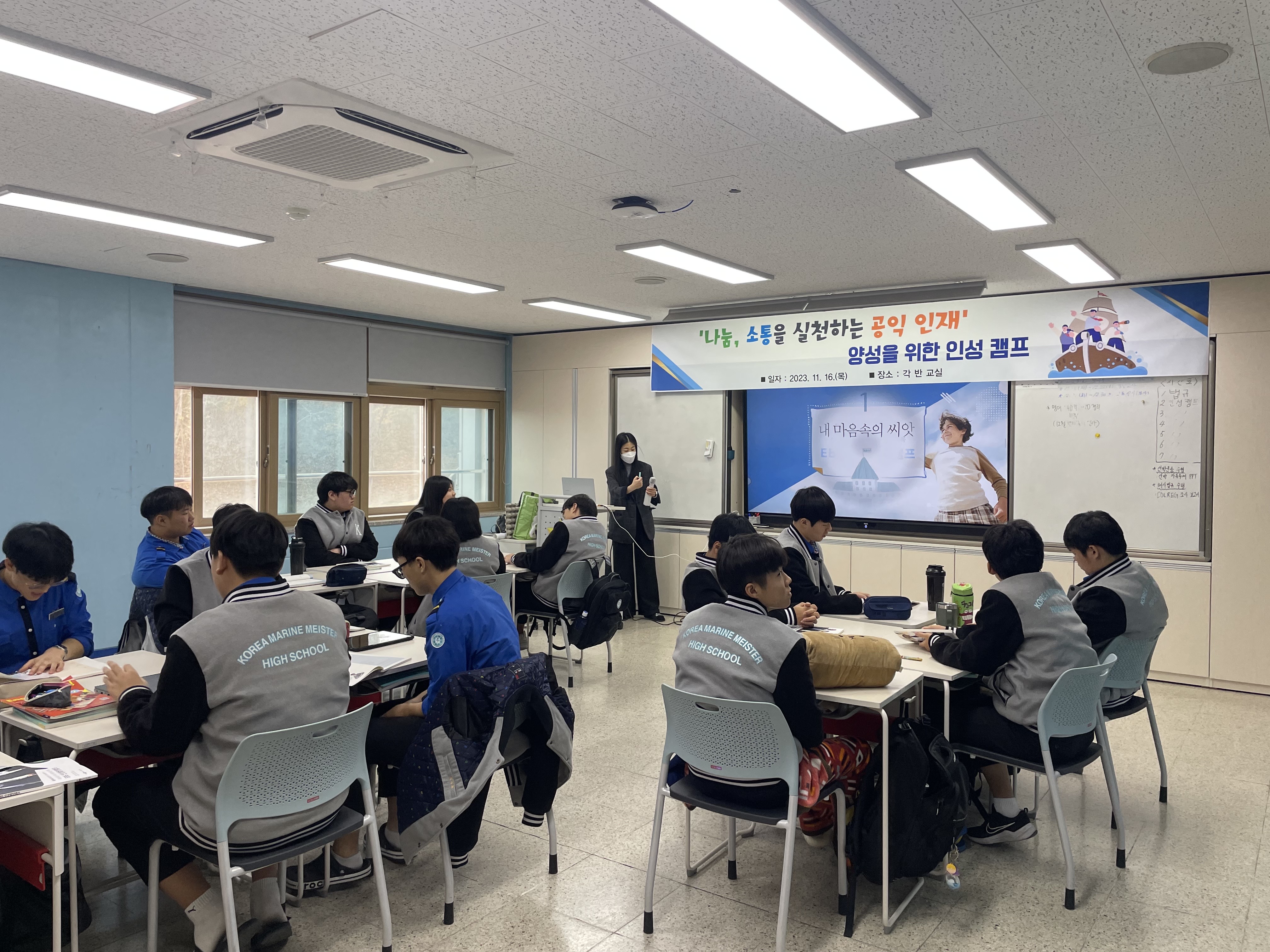 한국해양마이스터고등학교(교장 김미향)는 11월 16일(목) 1, 2학년 학생을 대상으로 EBS 인성 함양 캠프를 실시했다.