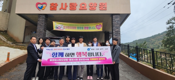 통영참사랑요양원은 통영시 광도면에 위치한 노인요양시설로 박주영 원장과 김익진 공보감사실장을 비롯한 두 기관의 직원들이 참석한 가운데 협약식이 진행됐다.