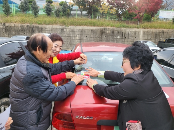 이번 사업은 18개 시군 자원봉사센터에서 공동으로 진행하는 안녕 캠페인으로 어르신 운전자 사고율 증가에 따른 대책으로 실시하게 됐으며 경상남도 자원봉사센터에서 제작한 75세 이상 어르신 운전자 배려양보 스티커를 부착해 어르신 운전자를 위한 양보 운전을 부탁하는 취지로 진행됐다.