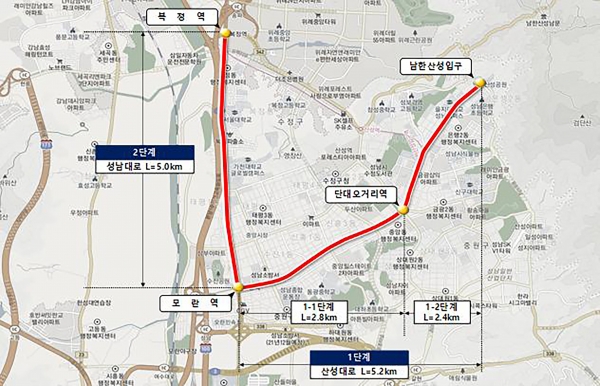시는 특히 내년 상반기에 2단계 구간인 성남대로 5.0km 구간의 기본 및 실시설계를 산성대로 공사와 동시에 추진해, 원도심 핵심 주간선축의 교통 여건 개선에 속도를 낼 예정이다.