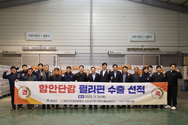 [금요저널] 함안군은 지난 16일 칠북면 소재 탑프루트 영농조합법인에서 조근제 함안군수, 수출업체, 농협 임·직원과 생산농가 등 20여명이 참석한 가운데 올해 첫 단감 수출 선적식을 가졌다.
