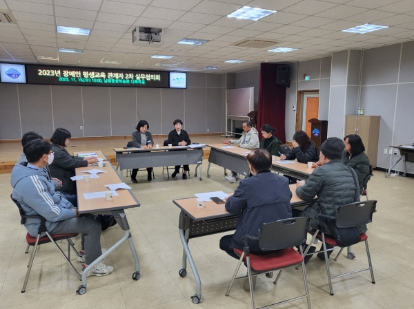 [금요저널] 남해군은 지난 15일 남해평생학습관 다목적홀에서 ‘2023년 남해군 장애인 평생교육 관계자 2차 실무협의회’를 개최해 장애인 평생학습도시 활성화 방안을 논의했다.