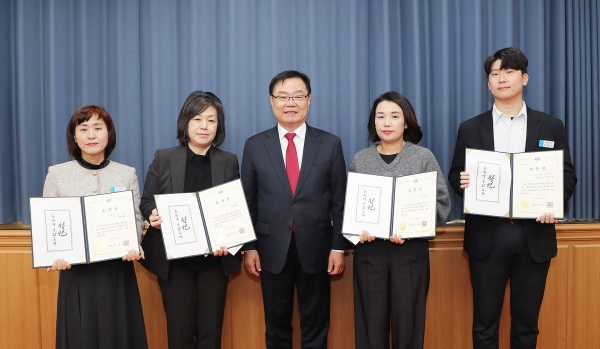 이번에 수상의 영예를 안은 직원은 총 4팀으로 교육경비보조사업 관리를 강화해 ‘24년 창원시 교육경비지원 체계를 재점검하고 진해지역 학교 신설을 적극 추진해 교육환경 개선에 힘쓴 ’평생교육과 학교지원팀‘, 지역 내 주요 민원인 봉림게이트볼장 소음 민원을 분회 통합으로 해결하고 운영비 등 예산 절감에도 기여한 ‘봉림동 총무팀’, 환경부 환경교육도시 지정을 추진해 최종 선정됨으로써 환경교육 관련 국비 우선 지원과 시 브랜드 위상 제고에 기여한 ’환경정책과 환경교육팀‘, 앱미터기 복합할증 자동화를 통해 투명성을 제고하고 법인택시 운수종사자 지원사업으로 택시 서비스 활성화에 기여한 ‘교통정책과 택시팀 김현수 주무관’이 그 주인공이다.
