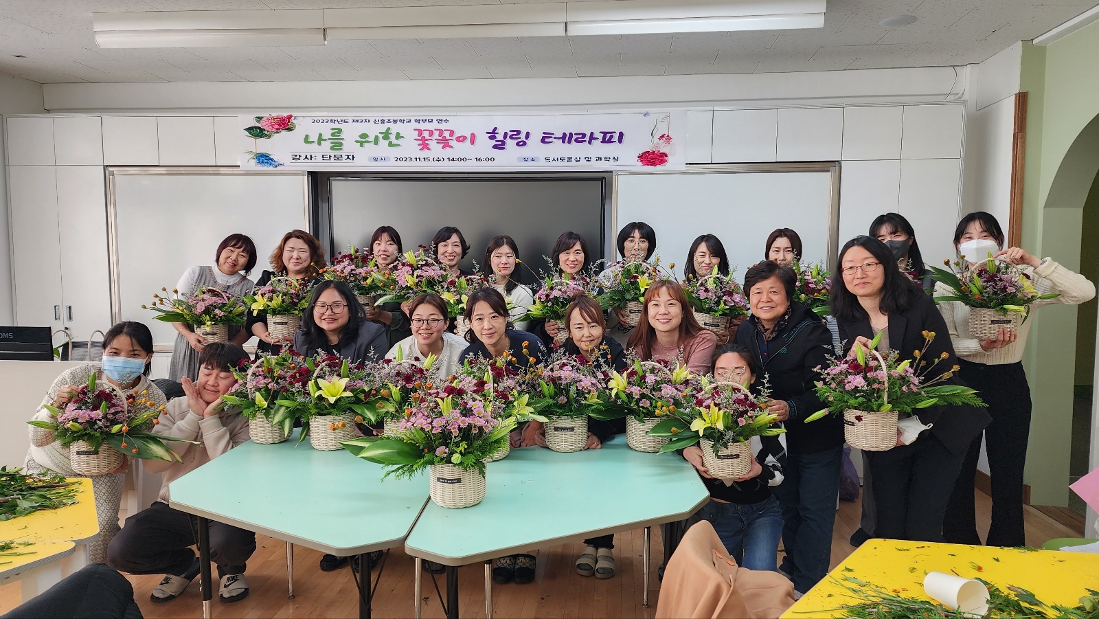 포항 신흥초등학교(교장 김경숙)는 지난 11월 15일(수) 본교 독서토론실에서 학부모 20여 명을 대상으로 ‘나를 위한 꽃꽂이 힐링 테라피’라는 주제로 학부모 연수를 운영하였다.
