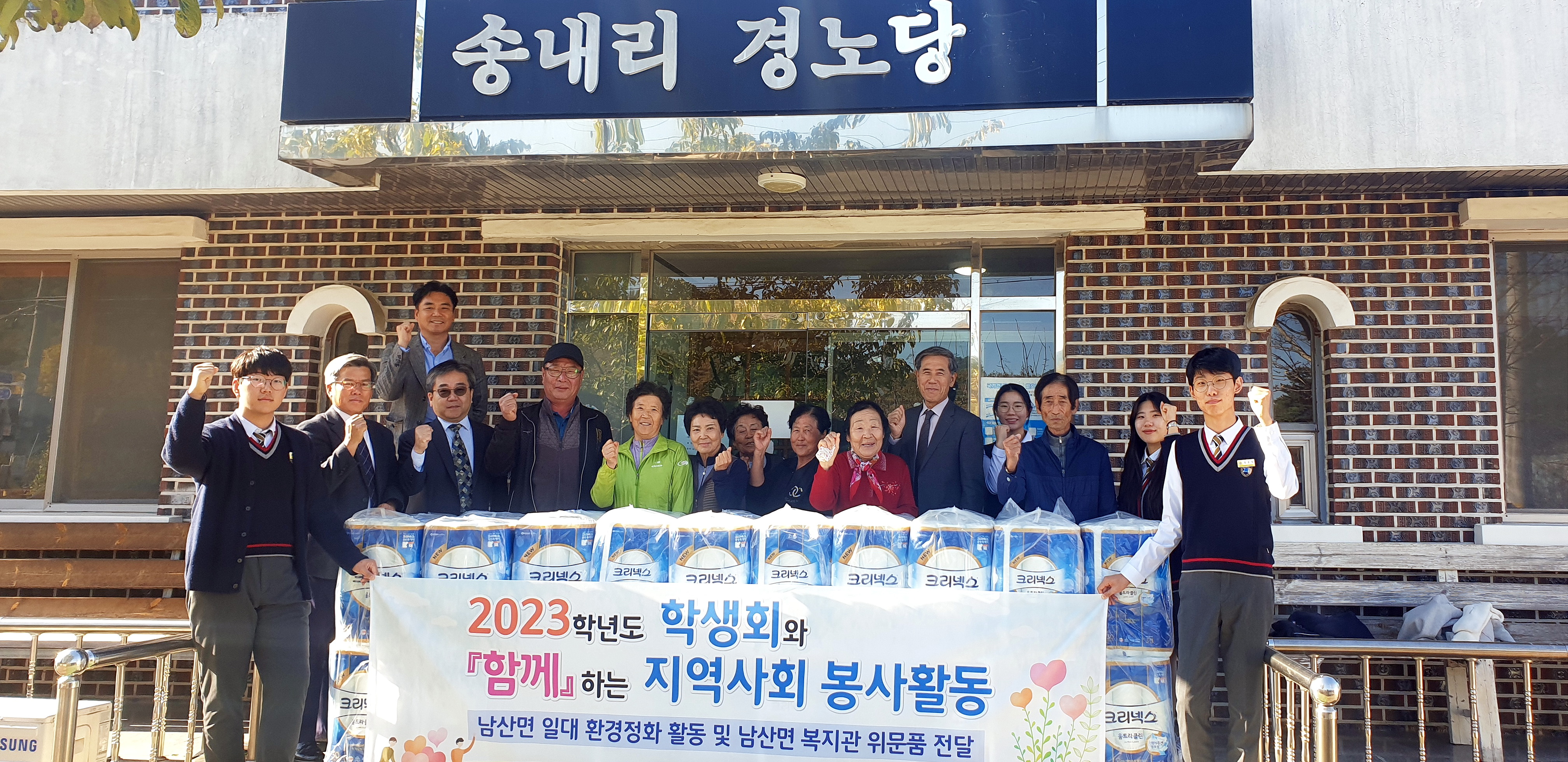 - 남산면장은 “남산면의 활력소로 자리매김한 영남삼육고에서 위문품 전달과 환경정화 활동을 진행해줘서 감사하다.”면서 “추후 남산면민과 영남삼육고가 협력할 수 있는 다양한 프로그램을 마련하겠다.”고 밝혔다.