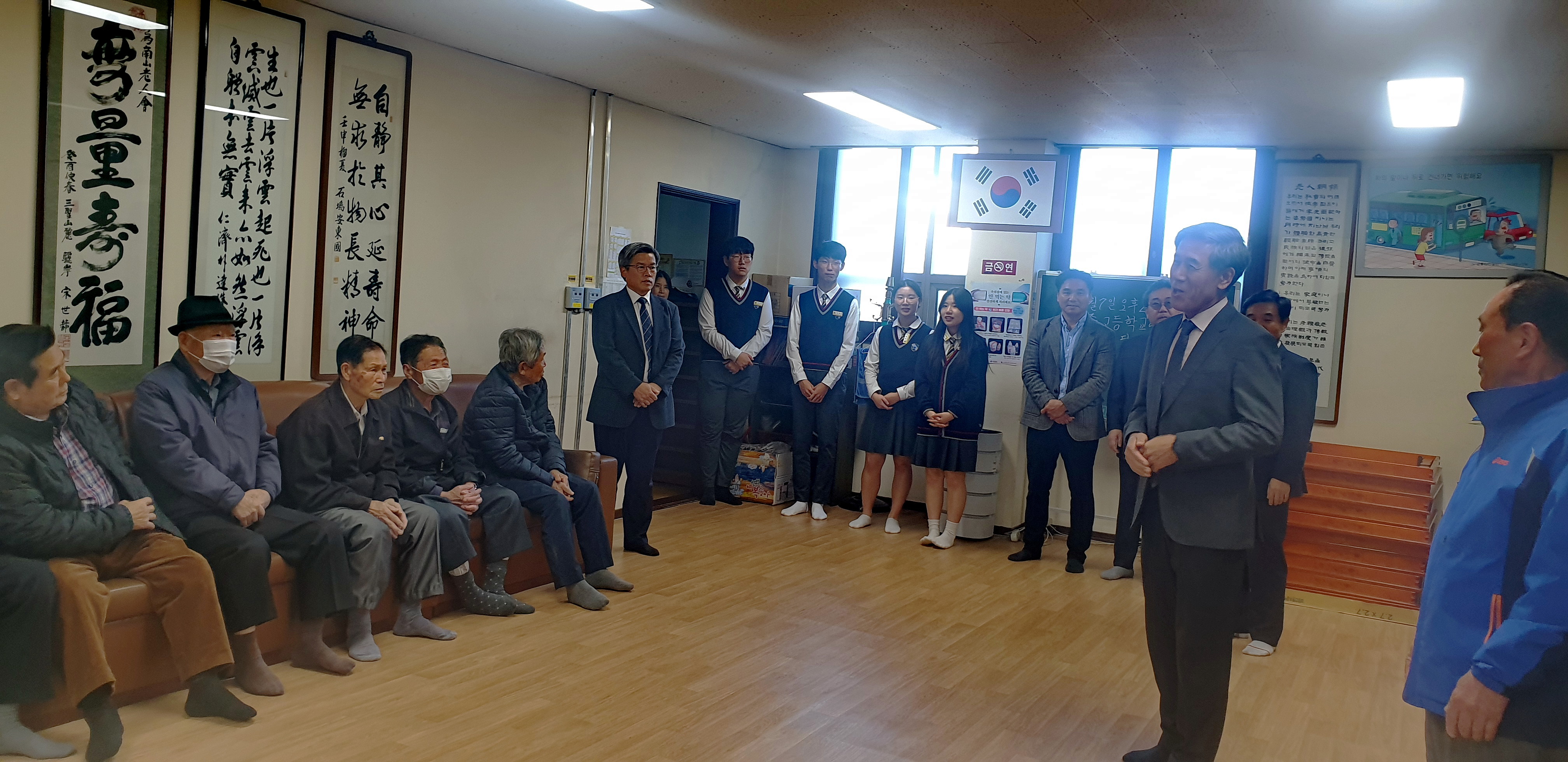 행사를 총괄한 손윤택 부장교사(영남삼육고)의 사회로 시작된 위문품 전달식에는 남산면장이 참여하여 지역사회 어르신들을 맞이하였다.