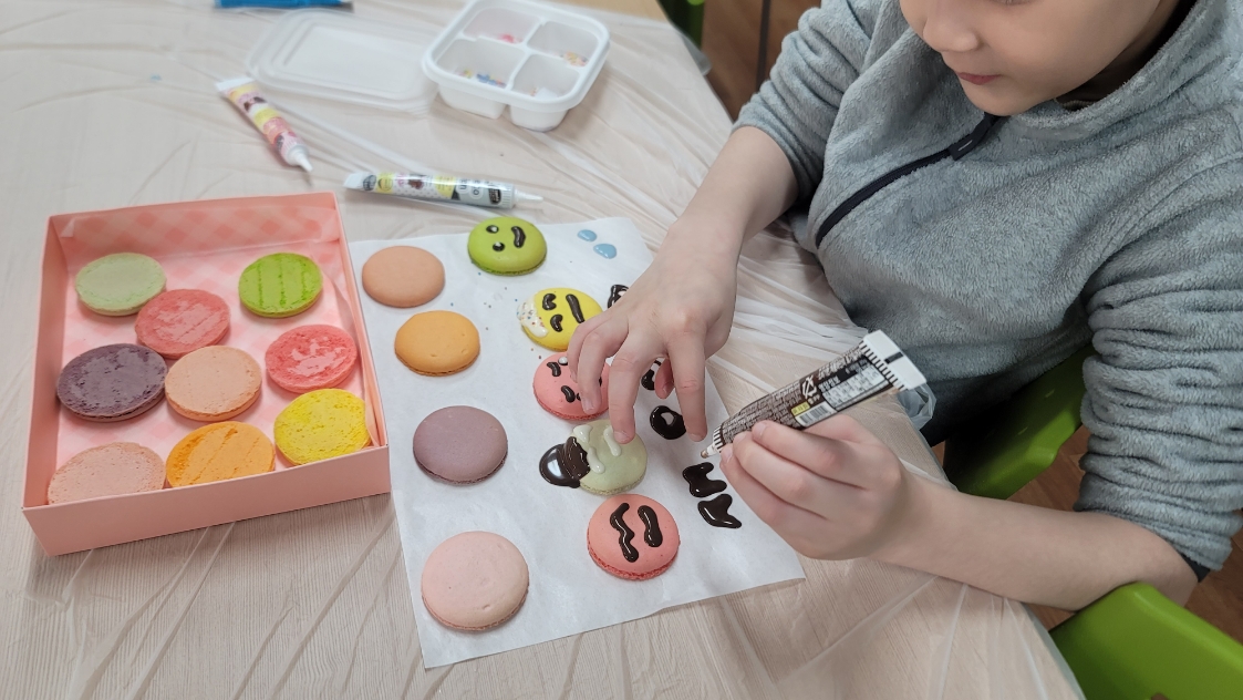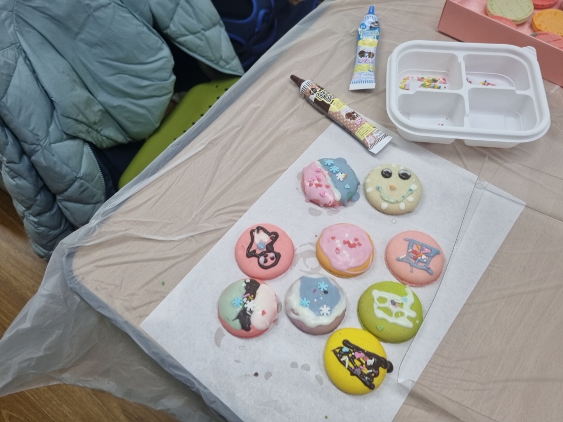 □ 프로그램에 참여한 학생들은 마카롱 꼬끄에 초코펜과 스프링클을 활용하여 가족 얼굴 꾸미기, 내가 만들고 싶은 작품 만들기, 상상 작품 만들기를 하며 창의성을 발휘하였다. 그리고 함께 만드는 친구들과 긍정적 상호작용 하는 시간을 가지며 서로의 생각을 공유하고 타인에 대한 이해와 공감 능력을 기르는 시간을 가졌다.
