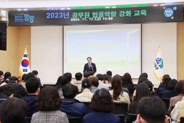 [금요저널] 함양군은 17일 오후 3시 군청 대회의실에서 전 직원을 대상으로 행정법의 이론·법령해석·자치법규 입안 등에 관한 2023년 공무원 법률역량 강화 교육을 실시했다.