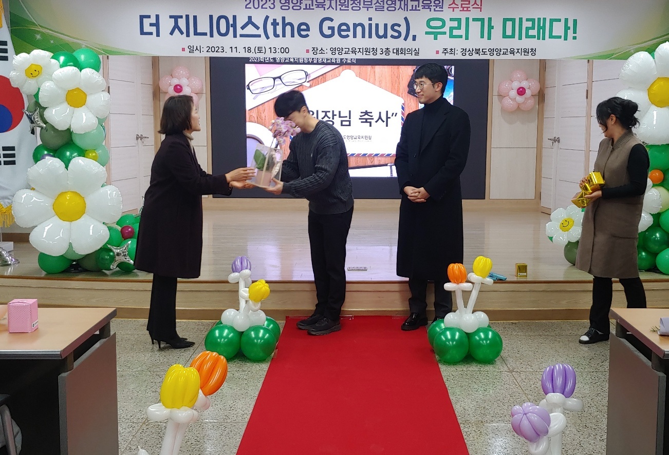 □ 영양교육지원청 김유희 교육장은 “1년간 성실하게 배우고 노력한 결과로 맞이하게 된 영광스러운 수료식을 축하한다. 학생들이 따뜻한 인성과 창의적인 리더십을 갖춘 미래형 인재로 자라주길 바란다. 여러분이 미래다”고 축하의 말을 전했다.