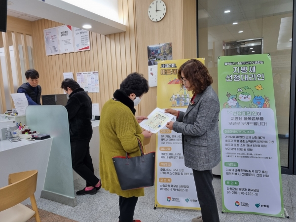[금요저널] 산청군은 지난 17일 산청군청 통합민원실에서 ‘마을세무사 및 지방세 선정대리인 제도’에 대한 홍보활동을 펼쳤다고 20일 밝혔다.